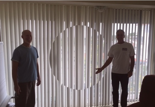 made graphic design vertical blinds. The proud owner of this iconic vintage piece of history loves watching sunsets through the circular illusion. He called me for help replacing the aging head rail and cracked valance. I was so proud to be a part of it! It brought back so many memories of my early days in the business.