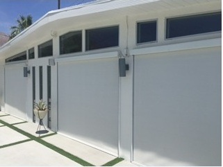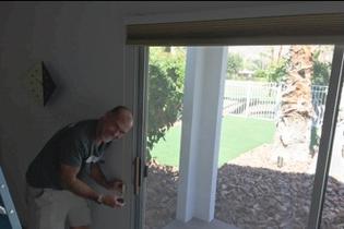These exterior motorized shades got out of alignment and guess who fixed them?