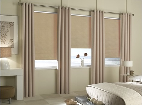 The latest trend: Roller shades and ready made drapery panels with decorative rod.
